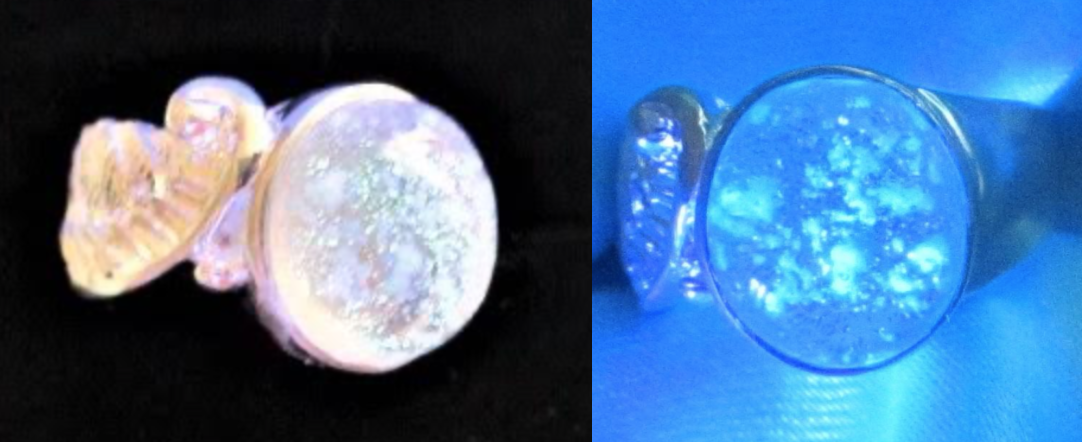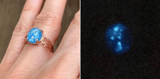 I love my beautiful ring! It is a great comfort to have a little piece of my husband with me always. Lynn does beautiful work! She even threw in a complementary matching pendant. All came beautifully gift-bagged. She puts a lot of care into her work. And yes, they really do give off a faint glow in the dark!